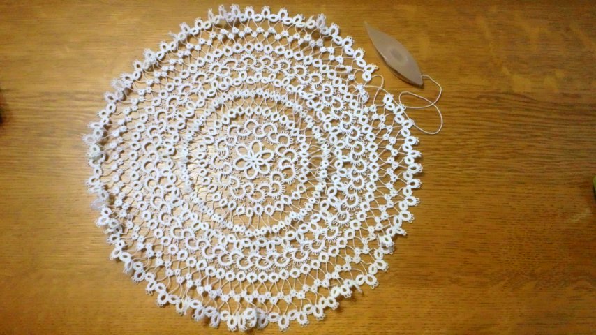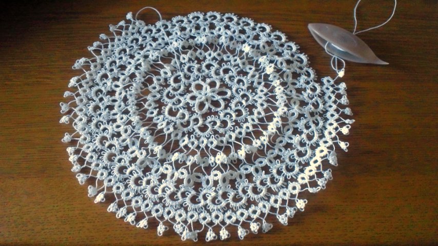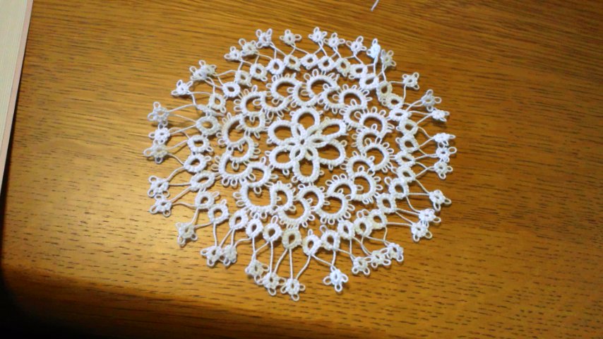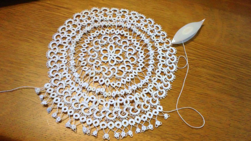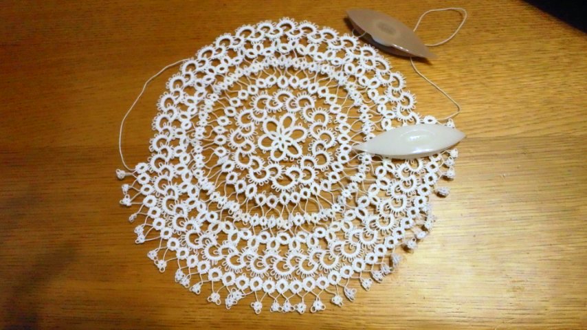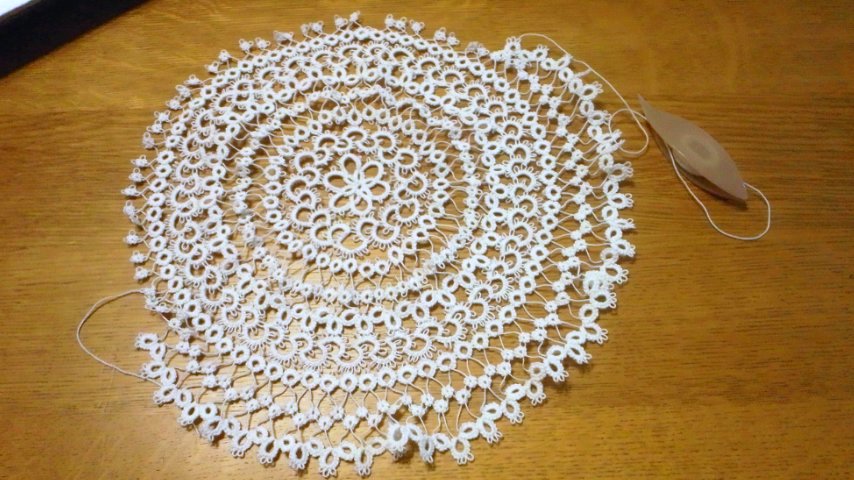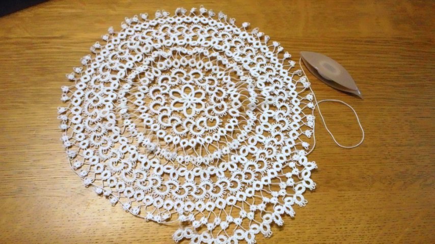 7月20日から編み始めたタティングレースのドイリーが完成しました。