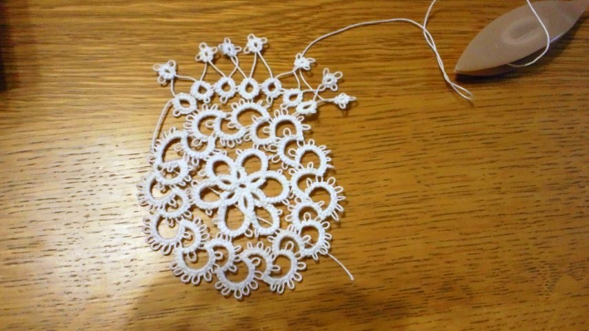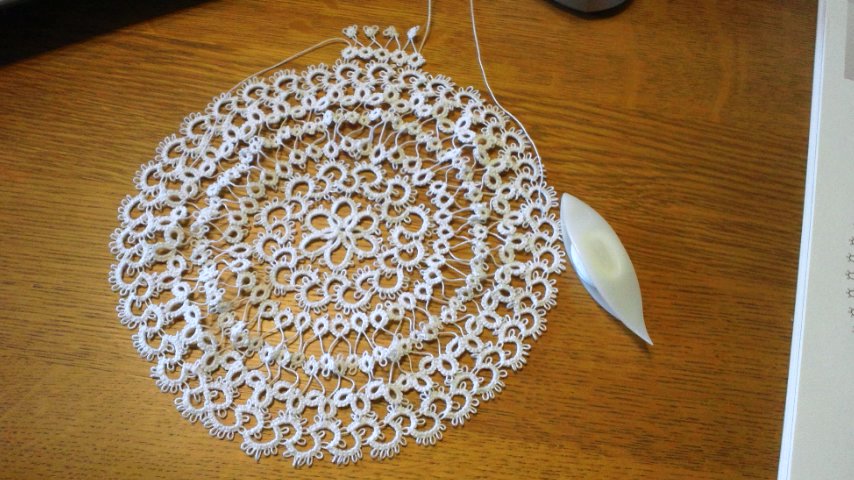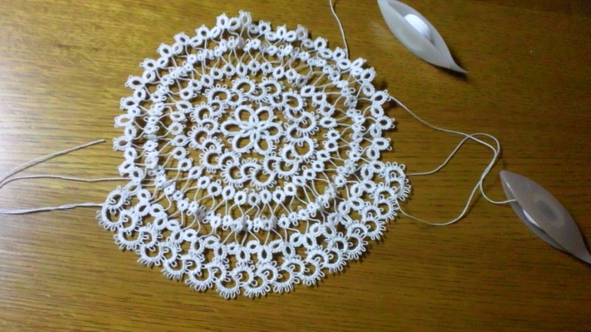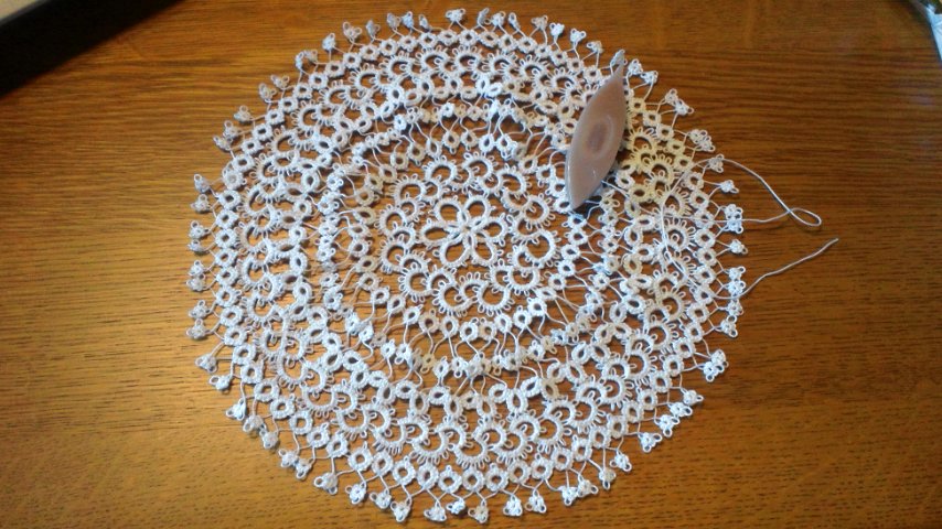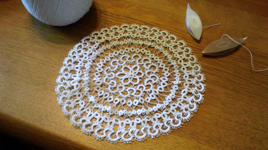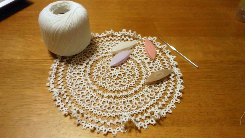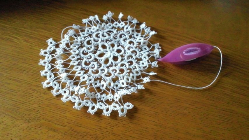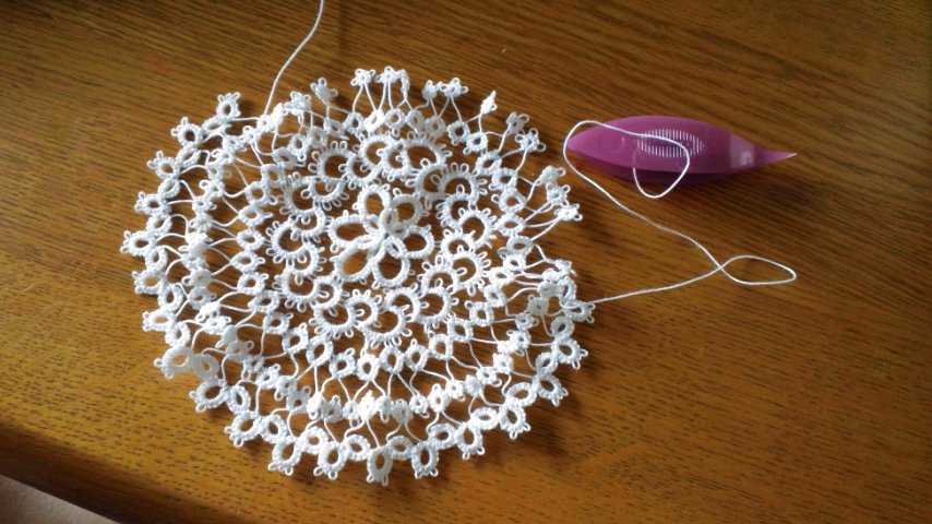 7月20日から編み始めたタティングレースのドイリーが完成しました。