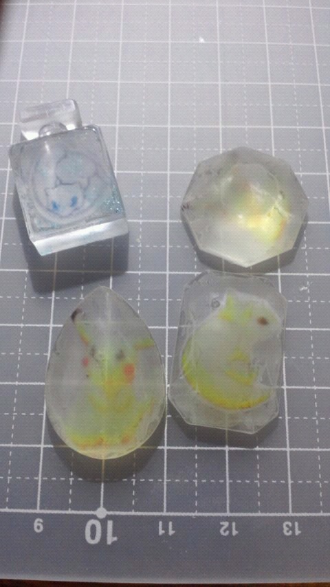 硬化不良になってしまった物の、表面にUVレジンを塗って硬化させてみました。