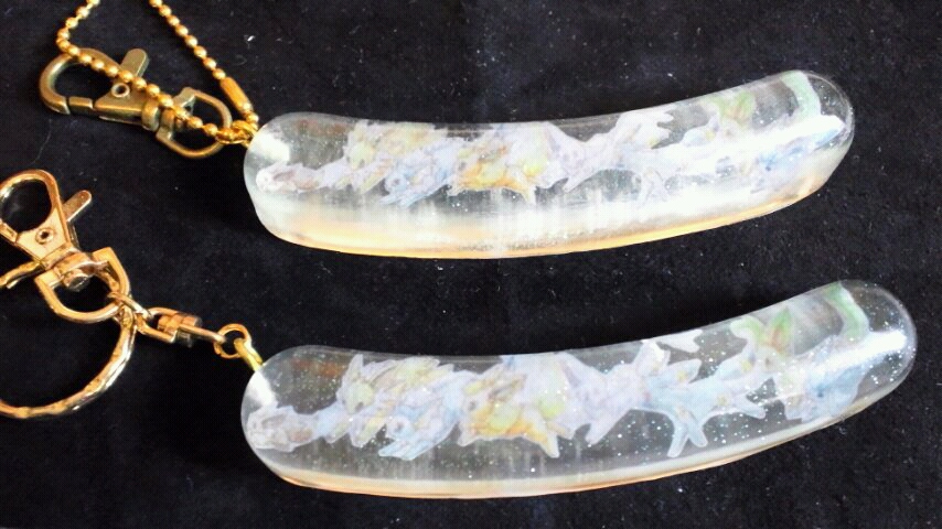 大きめのシリコン型って封入できる物の幅は広がりますが、ストラップにするには重たくなり過ぎて加工の幅は狭まってしまいます。