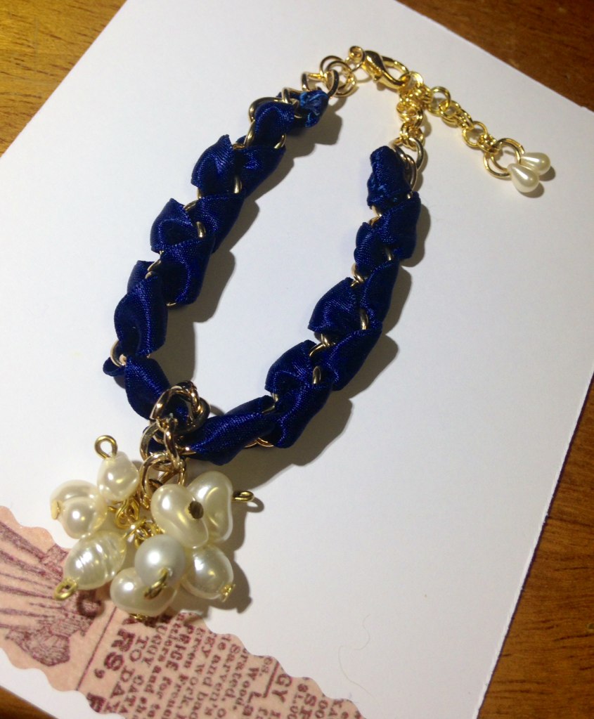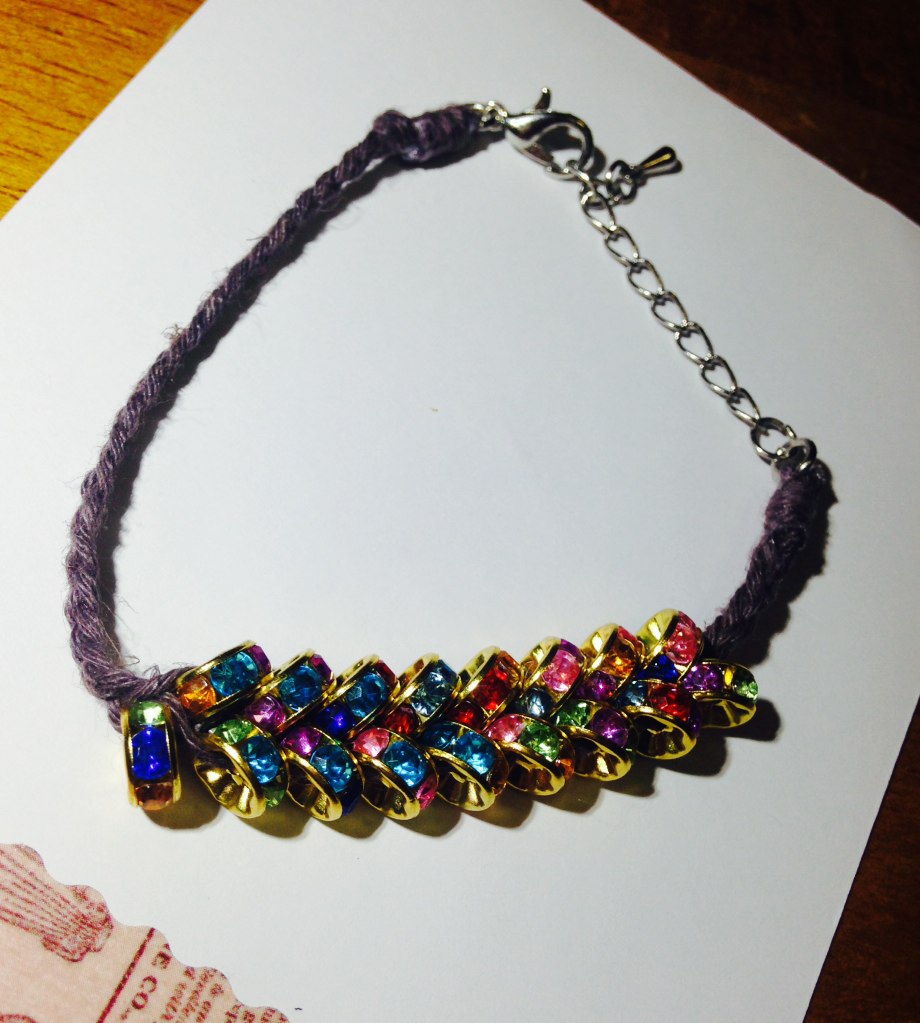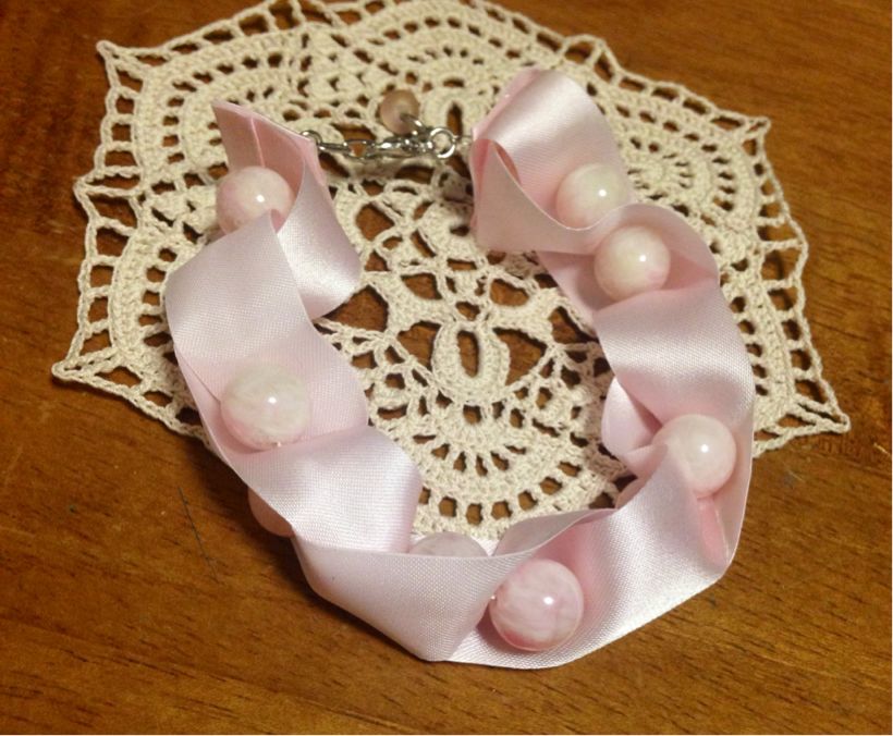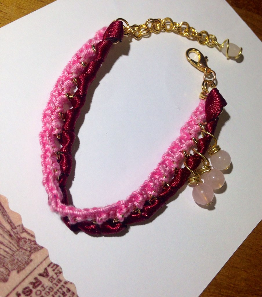 編んだわけじゃないけど、おまけでリボンとローズクオーツのブレスレット。