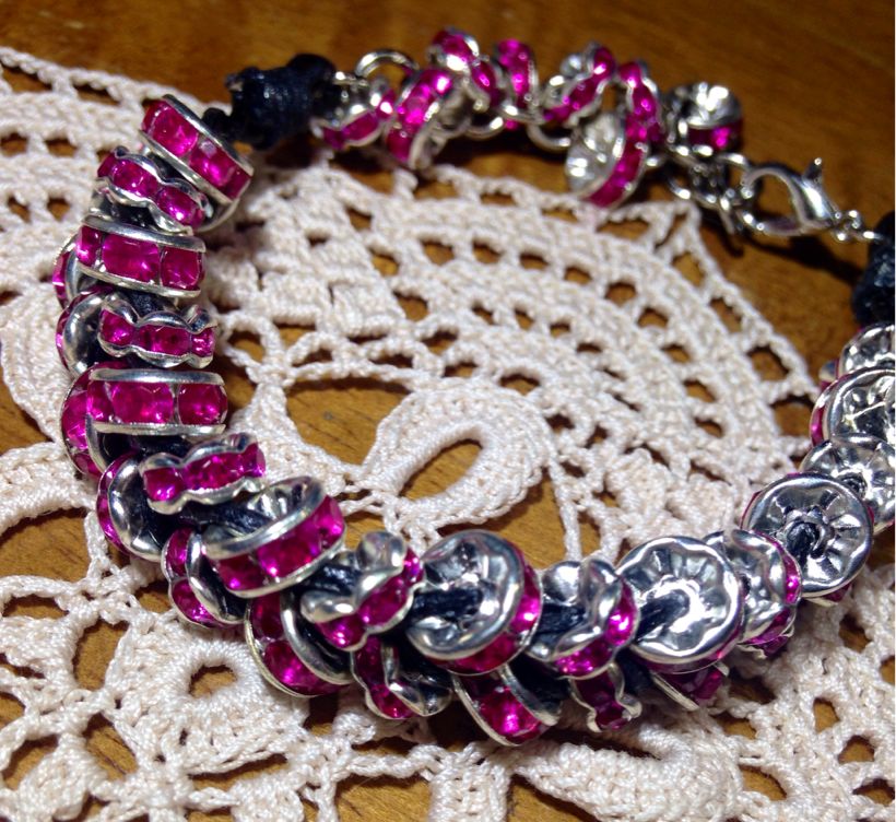 黒のレザーコードにロンデルを編み込んだ物。