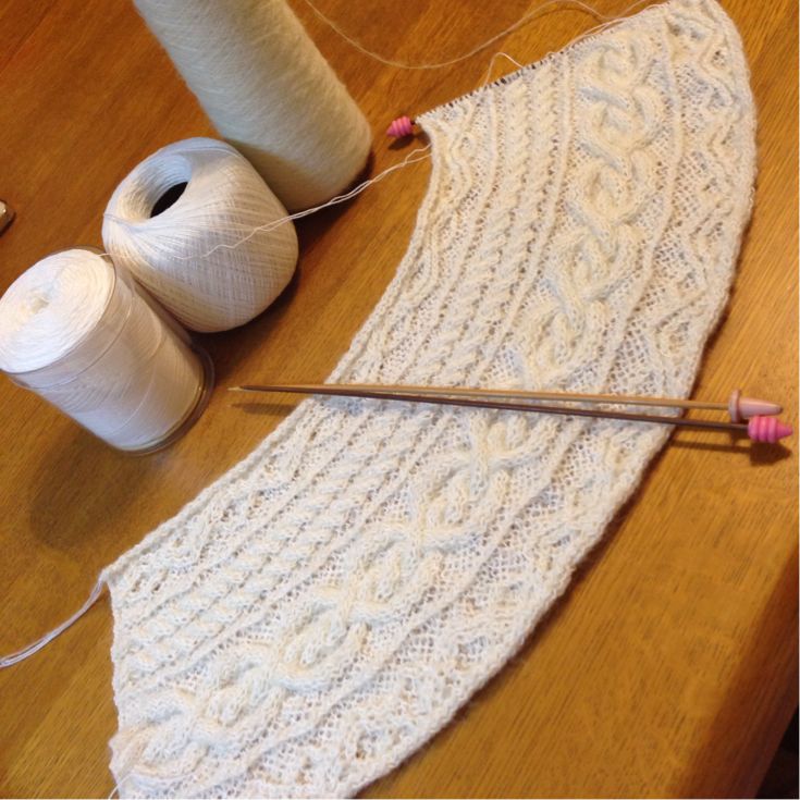 白の綿糸とピンクのモヘア糸の二本取り。