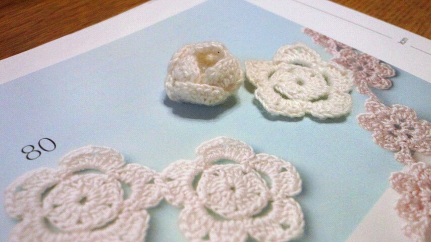 遠藤ひろみさんの『かぎ針とレースのコサージュ・ブーケ・モチーフ・リボン』のモチーフを片っ端から編んでみています。