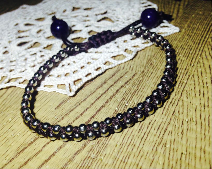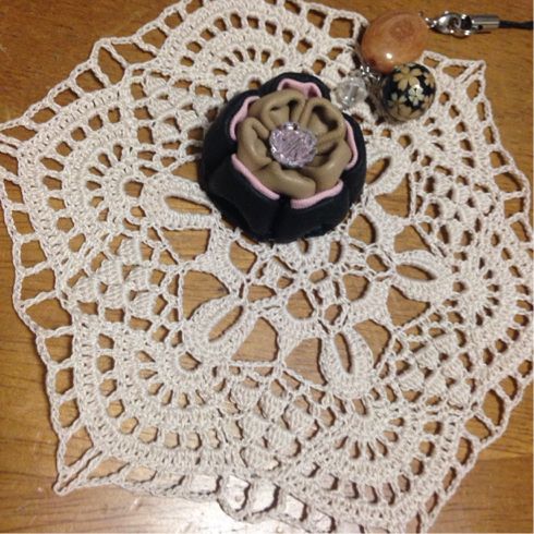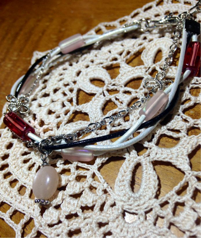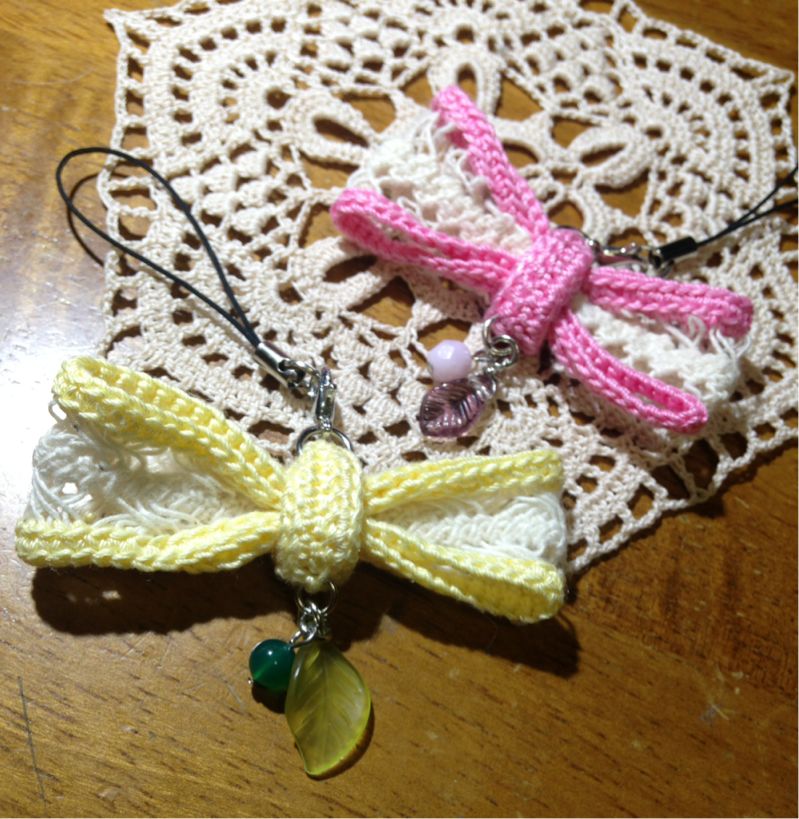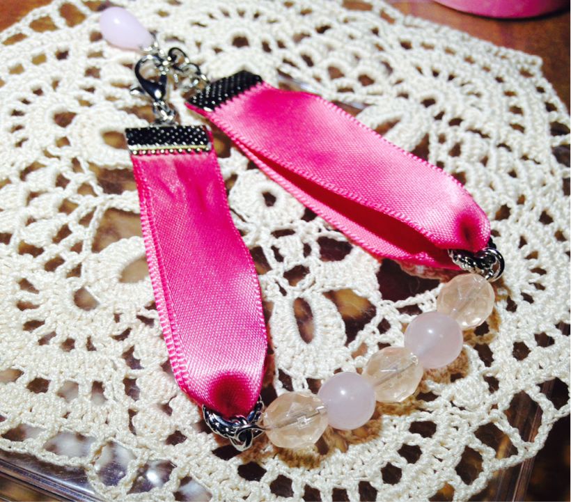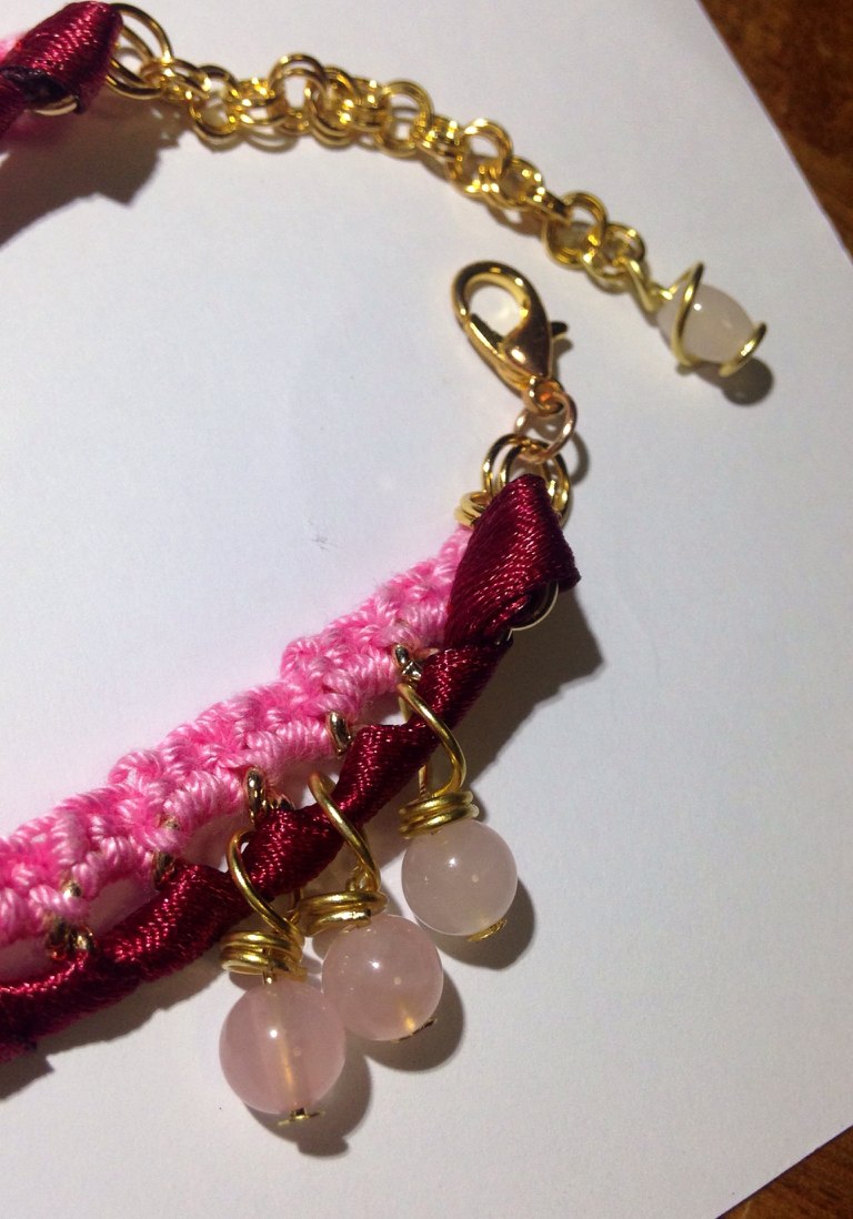 編んだわけじゃないけど、おまけでリボンとローズクオーツのブレスレット。