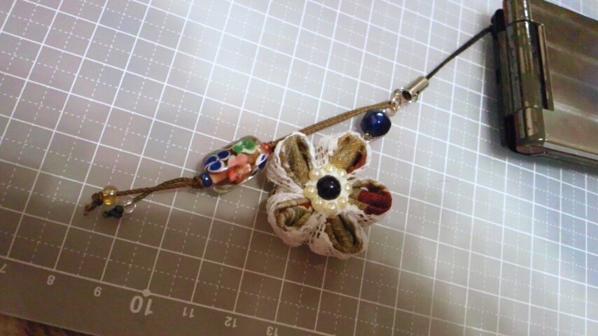 つまみ細工四個目。とストラップ。