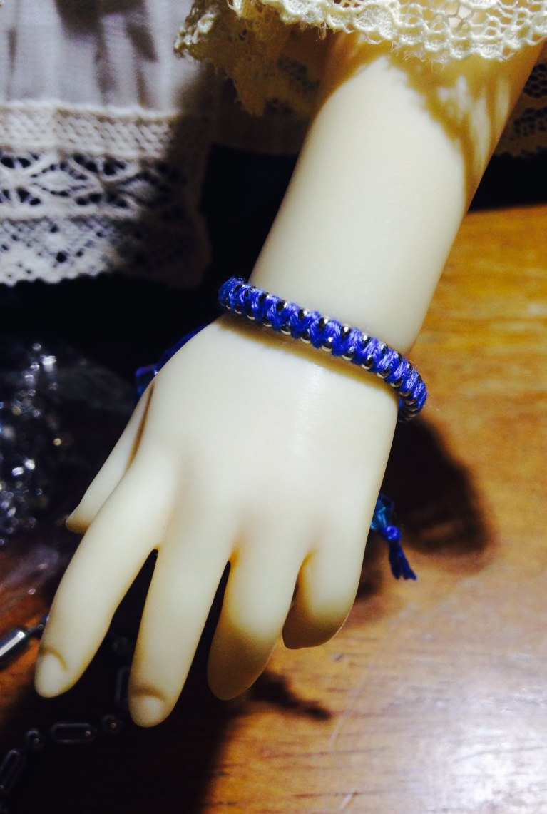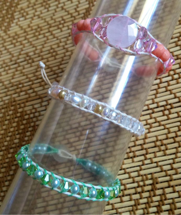 編んだわけじゃないけど、おまけでリボンとローズクオーツのブレスレット。