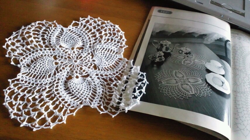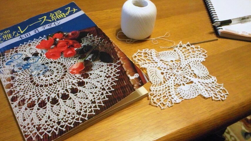 昨日、母のレース編みの本を見せてもらってたらカッとなって編み始めてしまいました。