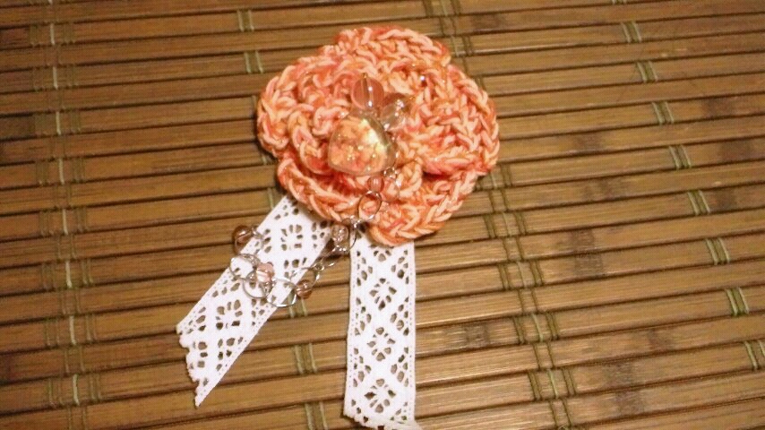 楽しく編んだコサージュをなんとか使える形にしようと四苦八苦。