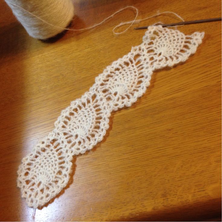 ネットで見つけたパイナップル編みのモチーフでラリエット?マフラー?を編んでみました。