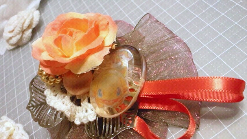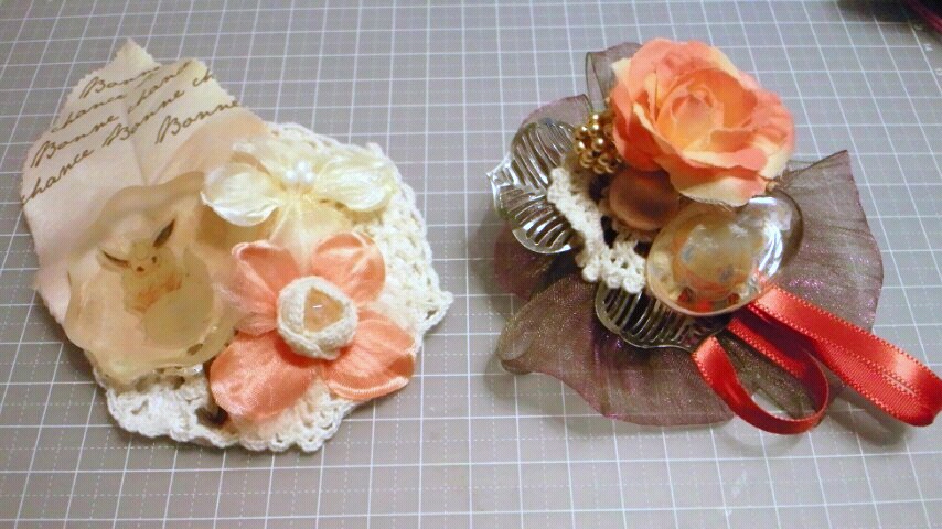 色々使って乙女なコサージュ…っぽく