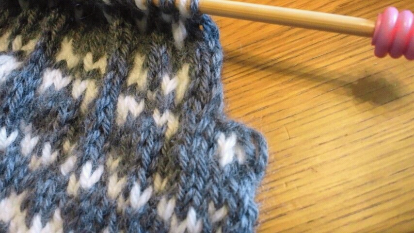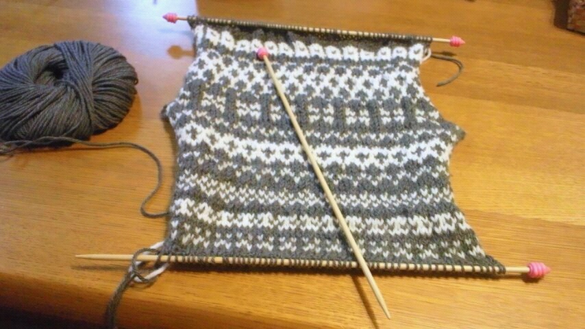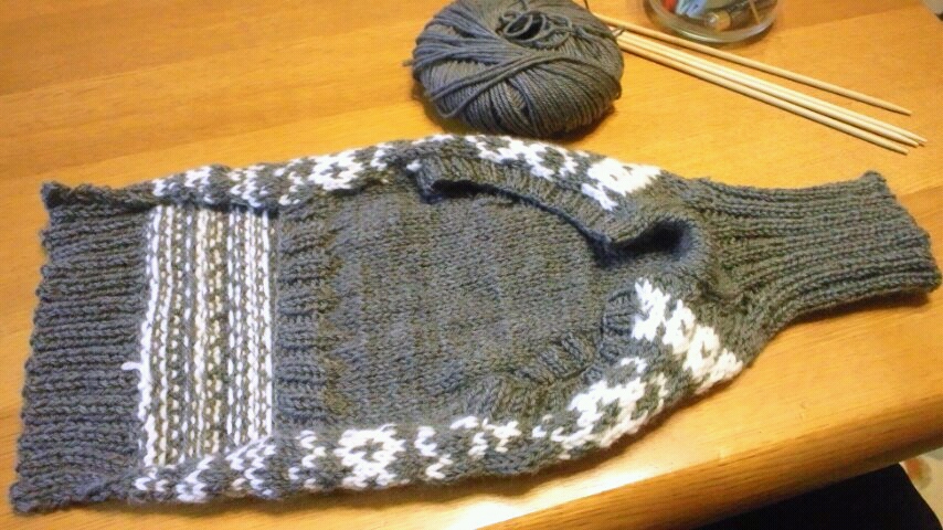 1日の夜には背中側の模様編みはだいたい出来ていました。