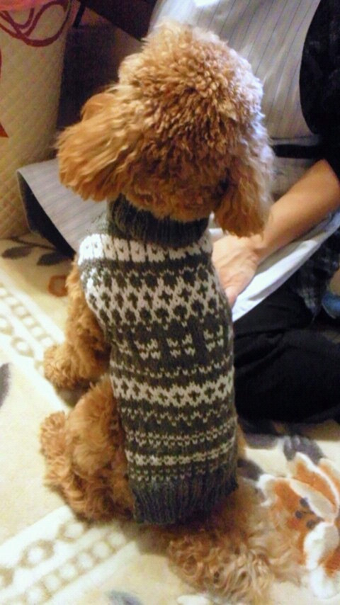 首はちょっと母に手伝ってもらい、袖は結局伏せ目で終わらせました。