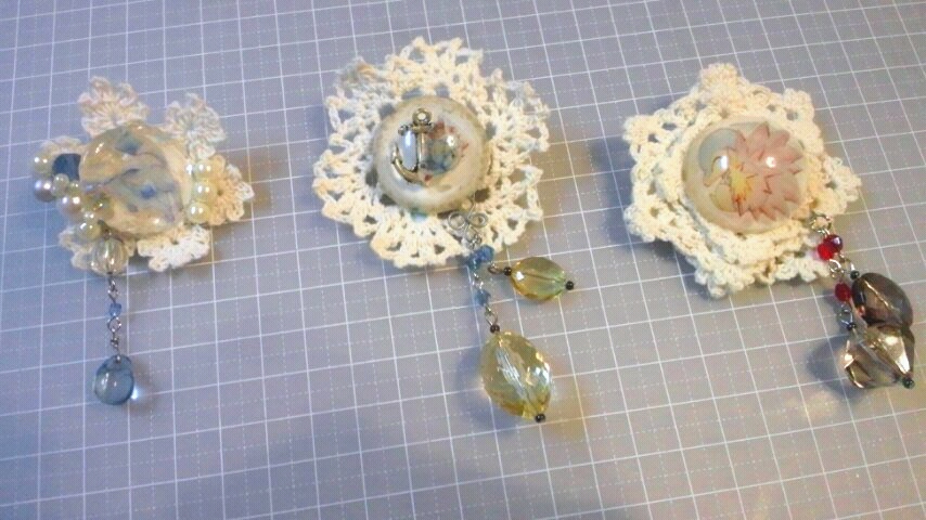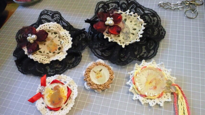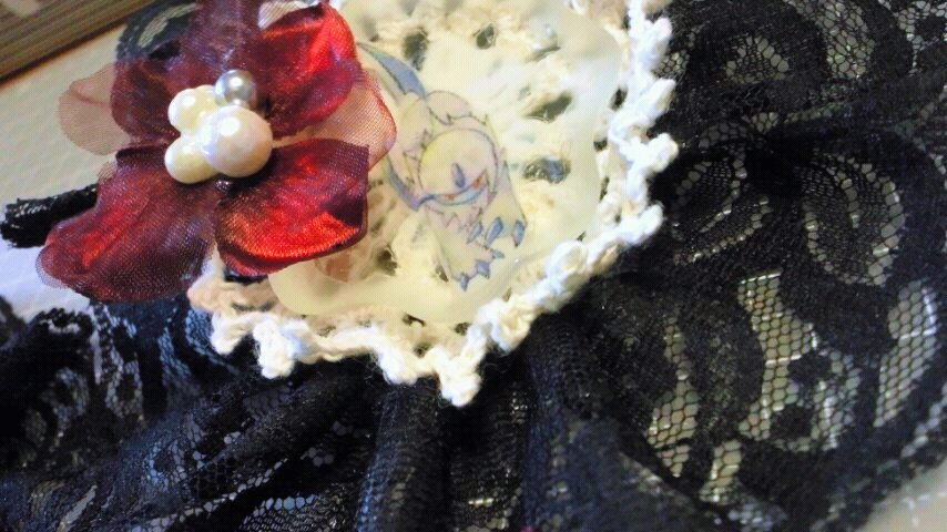 今回のシリーズはほとんど全てにかぎ針編みのモチーフとかドイリーを入れ込んでます。