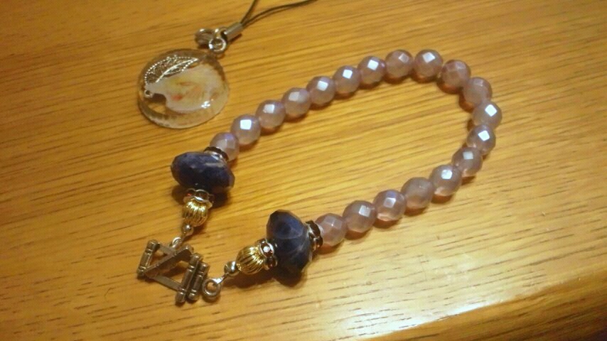 天然石+転写ビーズとデザインチェーンでシンプルに、とか。