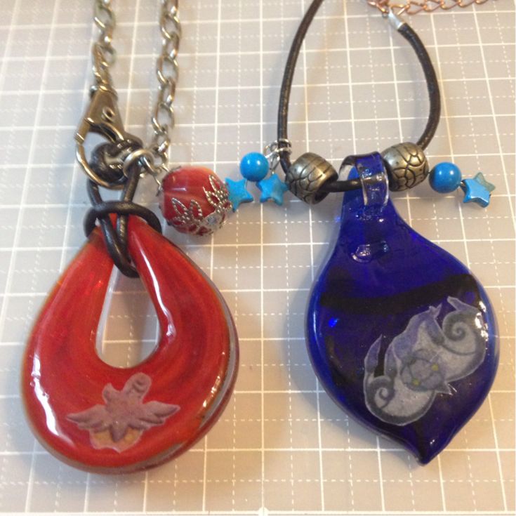 赤いほうにはレッドジャスパー。青い方にはターコイズ。